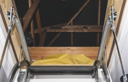 Po złożeniu schodów strychowych otwór w stropie zostaje zamknięty przez klapę, która jest do nich od spodu przymocowana. Zazwyczaj wykonana jest z drewna lub płyt drewnopochodnych. Aby zamaskować klapę, wystarczy pomalować ją na taki sam kolor jak sufit, a naokoło zamontować ozdobne listwy wykończeniowe. Zamknięta klapa nie rzuca się w oczy, widać ją dopiero po bliższym przyjrzeniu. Pamiętajmy, że schody z nieocieplaną klapą montujemy tylko między pomieszczeniami ogrzewanymi lub ocieplonymi. Mogą zatem prowadzić na strych, który ma ocieplenie ułożone w dachu lub na dachu, a nie na stropie. Natomiast ocieplone klapy stosowane są, gdy poddasze ma izolację termiczną ułożoną na stropie lub między jego elementami konstrukcyjnymi (drewniany strop belkowy).